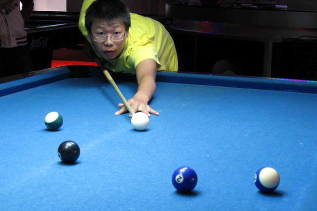 臺球經常被人們稱做"紳士"球,比賽以三局兩勝的淘汰方式,激烈的進行著。桌上藍茵地的紅秀,分外引人注目。來自輕化系的蘇志森笑到了最后。他告訴記者,在他上高二的時候,偶然的一次機會讓他接觸到了臺球,產生了興趣,所以開始試著學起來,“其實這次比賽只是抱著試試看的想法,因為開始怕自己水平不高,會出丑,”比賽結束他意猶未盡,“打臺球要的是體力加智慧,對人的要求很高,很有挑戰性,所以,我喜歡。”