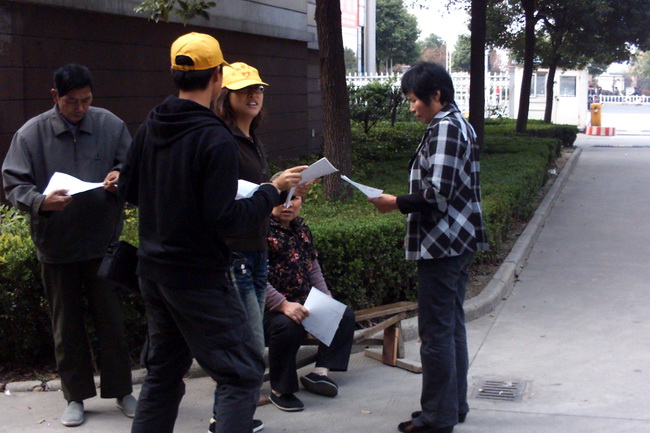活動進行的很順利,小區居民對畫報上的《周恩來向農戶道歉》、《海瑞與嚴嵩的故事》、《四知先生》等以廉潔為主題的故事非常感興趣,他們不僅主動索要傳單,而且還停下腳步傾聽志愿者詳細解釋這些故事。
