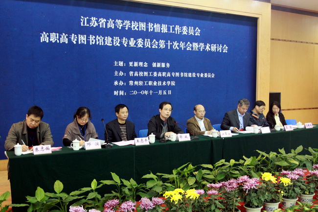 大會邀請高職高專學術委員會顧健作了依據事實數據,在比較中進步--江蘇省高職院校圖書館統計數據分析報告、邀請高職高專委員會副主任白樺作了江蘇省高職高專圖書館建設專業委員赴廣東調研考察報告。