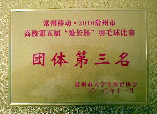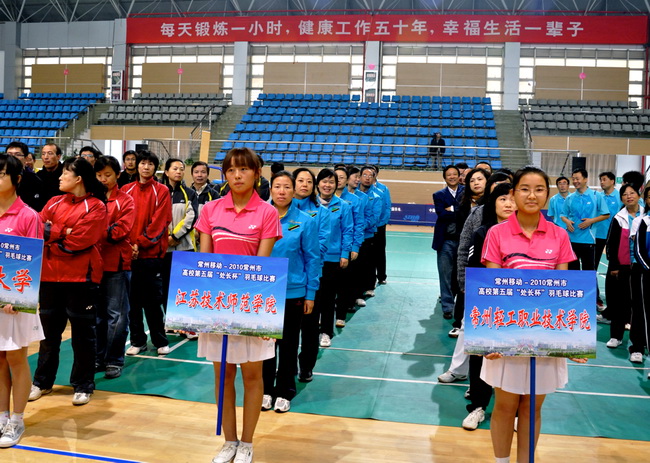 2010年11月6日,常州市高校第五屆“處長杯”羽毛球比賽在隆重、熱烈、友好的氛圍下在常州紡織職業技術學院圓滿落下帷幕。在常的八所院校組織中層干部參加本次比賽。