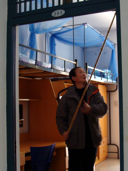 在本次活動中,全體旅游系教師深入學生宿舍,幫助學生清理頑固污漬,磨平破損墻面。為了給學生更好的環境,使公寓真正成為大家生活和學習的場所,旅游系以創建學習型公寓為導向,以環境育人為手段,自本學期開學來,關心學生生活,提供更好條件,做出了一系列的措施和舉動:嚴格制定旅游系宿舍衛生評分標準,完善檢查反饋制度,建立樣板宿舍,使用定位定量圖,指導同學參觀學習;在加強學生宿舍內務整理方面,特別邀請參軍退伍學生吳凱同學利用中午時間在客