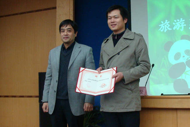 121晚六點半,旅游系在教學樓3201舉行客座教授授聘儀式,正式聘任史劍鋒先生為我系客座教授。授聘儀式上,學院副院長楊勁松為史劍鋒先生頒發(fā)了聘書,并對我系師生寄語,希望我系師生再接再厲,在校企合作上做出特色、做出成績。