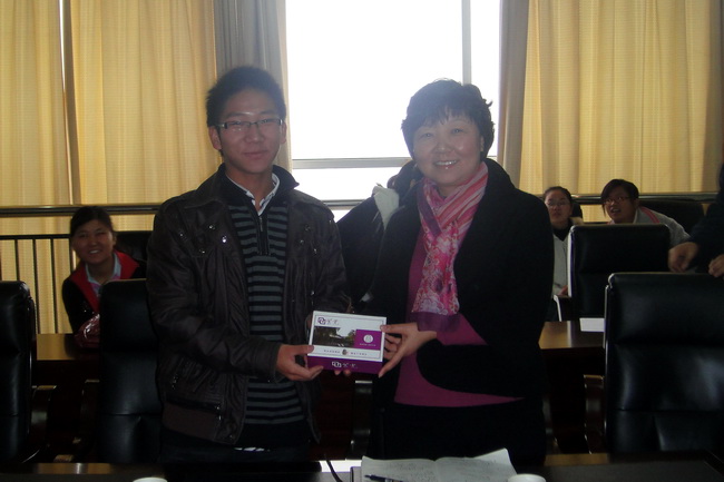 最后,楊海清主任代表管理系全體師生感謝王奎同學為大家帶來的一場精神盛宴,并贈送了學習用品。