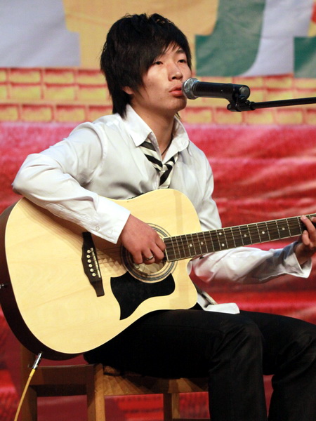 絢麗的舞臺雖伴有輕快的歌曲,但仍彌漫著硝煙的氣味,決賽的緊張氣氛并不因此而減弱。從復(fù)賽的眾多選手中脫穎而出的16位選手有了以往參加比賽的經(jīng)驗,他們顯得更加從容,更加自信。一幕幕經(jīng)典的銀幕形象通過選手們開場的演繹顯得形象而又生動。一曲《青春紀(jì)念冊》吟唱難忘的歲月,凝聚心頭不變的情節(jié)。一首首動聽的歌曲回蕩在報告廳中,同學(xué)們的喝彩聲此起彼伏,晚會更是高潮迭起。此次大賽的選手們不僅能說會唱,更是能演會跳,趙杰的《快樂崇拜》用簡單明快的舞蹈帶動著全場的氛圍;一首《青藏高原》讓李星星先聲奪人,蕩氣回腸;柏群忠自彈自唱的原創(chuàng)歌曲《二十年征途》,才藝雙馨,清新脫俗;呂超的《江南》、徐紹燕的《聽海》更是深情款款,讓人投入其中難以忘懷;吶喊助威聲不時的從選手們的粉絲團中傳來,現(xiàn)場氣氛十分活躍,而在絢爛的舞臺上選手們繼續(xù)綻放屬于他們的光彩,朱車成的一曲《新貴妃醉酒》更是把現(xiàn)場的氛圍推向了最高潮……