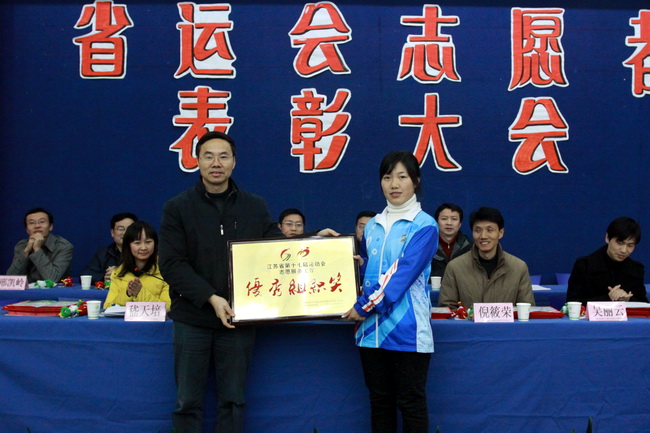 會議由團委副書記嵇天培主持,首先回顧了我院350余名賽事志愿者、30余名崗亭志愿者、50余名服務于志愿者服務站的志愿者的工作情況以及省市各級領導對我院志愿者的慰問和贊揚;接下來,會議表彰了省運期間涌現(xiàn)出的一大批先進的集體和個人,許歡同學代表四百余名志愿者發(fā)言;院黨委張濤副書記在會議上對獲獎的集體和個人表示祝賀,并希望廣大志愿者能夠繼續(xù)發(fā)揚“奉獻、友愛、互助、進步”的志愿服務精神,練就良好的身體素質和心理素質以及綜合素質,爭做高素質高技能型人才,在今后進一步發(fā)揚“愛崗敬業(yè),自強不息”的建軍精神!