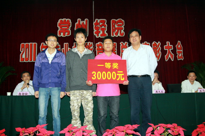 楊興華書記為榮獲“2011年全國職業院校高職組技能大賽‘光伏發電系統安裝與調試’比賽”一等獎的團隊頒發獎金