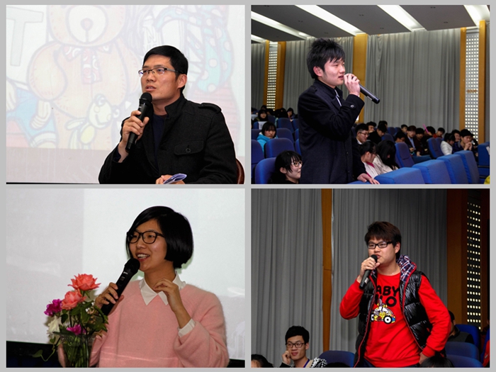 緊接著,讓觀眾迫不及待的吳亞萍、柏鐵山、張銀三位老師妙語連珠、趣味橫生的三人對話正式開始。根據(jù)事前在常州輕工職業(yè)技術(shù)學(xué)院百度貼吧上征集的問題,對話圍繞“戀愛中兩人相處的藝術(shù)”、“學(xué)生愛情中的親密關(guān)系”、“愛情與成長”三個主題熱烈展開。