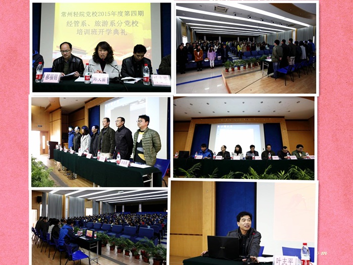 4月8日下午,常州輕院黨校2015年度第4期培訓班(經管系分黨校、旅游系分黨校)開班典禮在教學樓二樓報告廳隆重舉行。院黨委組織部部長葉志平、經管系黨總支書記陳文蕾、旅游系黨總支書記高振發、經管系黨總支副書記郝福錦、旅游系黨總支副書記邢凱嶺、旅游系分團委書記崔曉曙以及120余名入黨積極分子參加了此次典禮。開班典禮由經管系分團委書記徐克選主持。