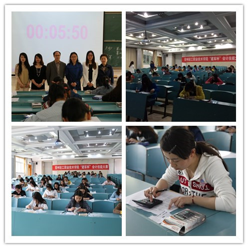 比賽開始前,主持人介紹了比賽規則與流程,429日下午首先進行的是計算計算技術——計算器比賽,考察的是選手們鍵盤錄入速度以及細心程度;其次是珠算比賽,選手們手指撥動,賽場內傳出清脆的算盤撥打聲,展現了選手們訓練有素的技能功底;然后是點鈔比賽,選手們運用不同的點鈔方法,手指迅速翻動,爭分奪秒,各展其能。會計實務的比賽于429日晚上舉行,賽場內選手們冷靜思考,沉著應戰,努力發揮自己的水平。整個大賽歷時7個多小時,從始至終賽場內都充滿了緊張激烈而又活躍積極的氛圍。