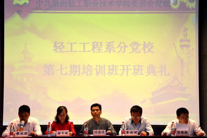 5月7日晚,常州輕院黨校2015年度第七期輕工工程系分黨校培訓(xùn)班開班儀式在小劇場隆重舉行。組織部部長葉志平、輕工工程系分黨校校長費建明、副校長嵇天培、院組織部陳曉敏以及輔導(dǎo)員出席了開班典禮。典禮由輕工系分黨校副校長繆雙明主持。