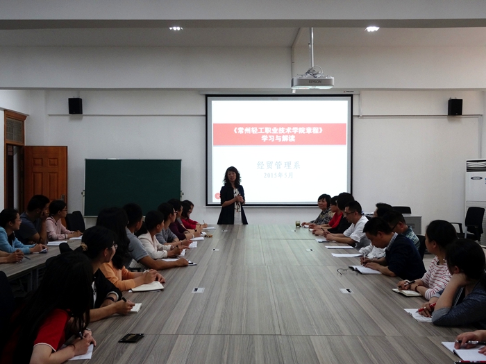陳文蕾書記在總結時表示,希望全系教師在依法治國的大背景下,認真學習、深入理解、積極貫徹落實《常州輕工職業技術學院章程》,共同促進學院和系部各項工作更上一層樓,用自己的勤奮與努力譜寫高職教育的新篇章。