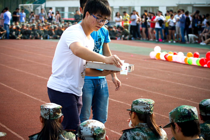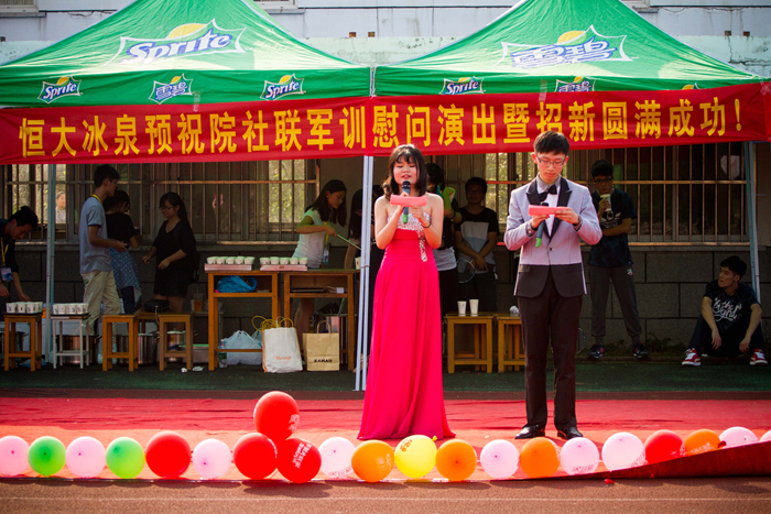 院社聯(lián)帶著精心編排的節(jié)目和飲品來到操場(chǎng),為新同學(xué)送來了歡樂和溫馨。此次活動(dòng)高潮迭起,亮點(diǎn)不斷。無論是光彩耀人的主持人,酷帥靈動(dòng)的舞者,還是鏗鏘有力的棍舞,笑點(diǎn)不斷的小品,優(yōu)美動(dòng)聽的歌聲,都讓現(xiàn)場(chǎng)尖叫歡呼聲不斷。常州紡織學(xué)院的旋風(fēng)雙截棍社與我院精武社強(qiáng)強(qiáng)聯(lián)合,精心籌備、完美合作的棍舞給大家留下了深刻的印象;誘惑力爆棚的有獎(jiǎng)競(jìng)答互動(dòng)環(huán)節(jié),更為活動(dòng)的氣氛添上一把火。最終,軍訓(xùn)慰問暨招新活動(dòng)在院社聯(lián)主席的致辭下完美落幕。