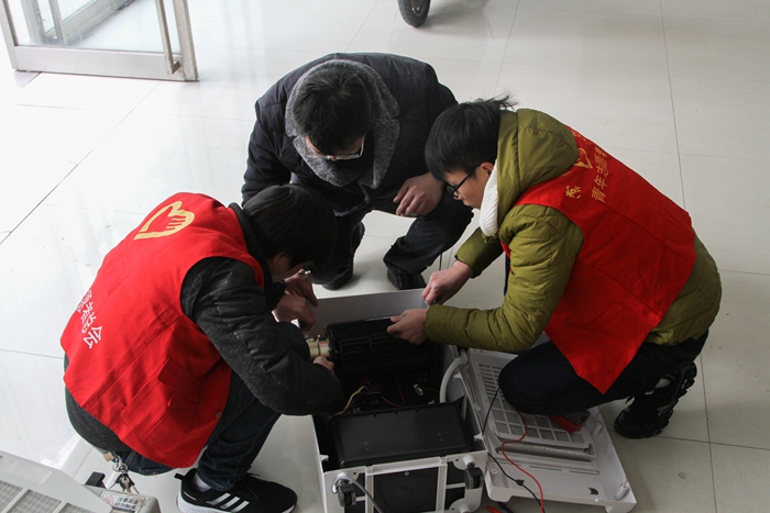 在電子系黨總支、團委的精心組織和關工委老師熱情幫助下,電子系團委書記韓楊、流光映紀拍客俱樂部指導老師張書貴、家電維修協會指導老師顧六平帶領家電維修社志愿者、學生黨員志愿者、拍客協會志愿者,于 12月14日 走進常州市長虹社區,開展家電公益維修活動。????????