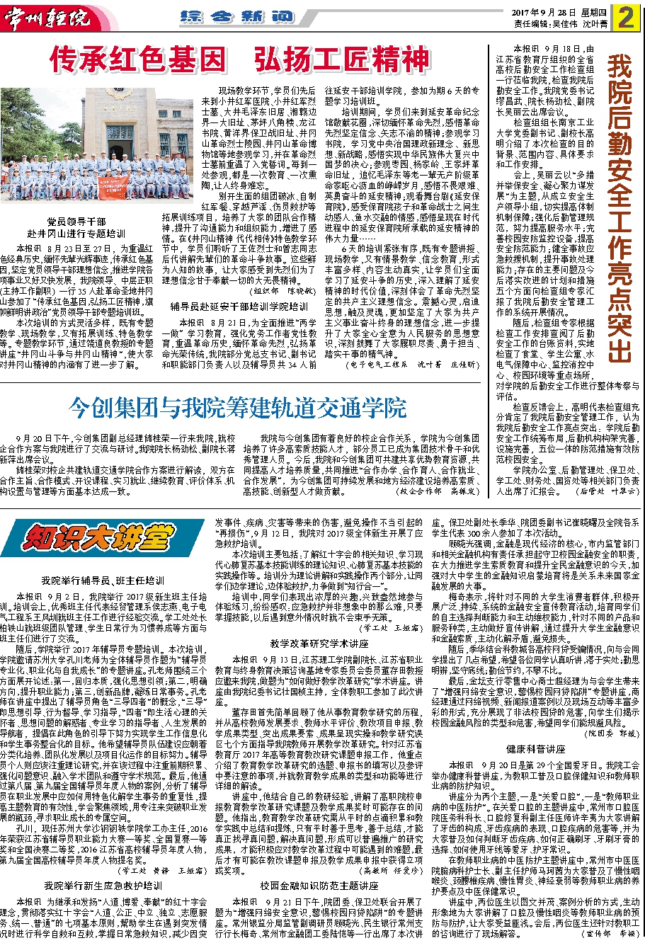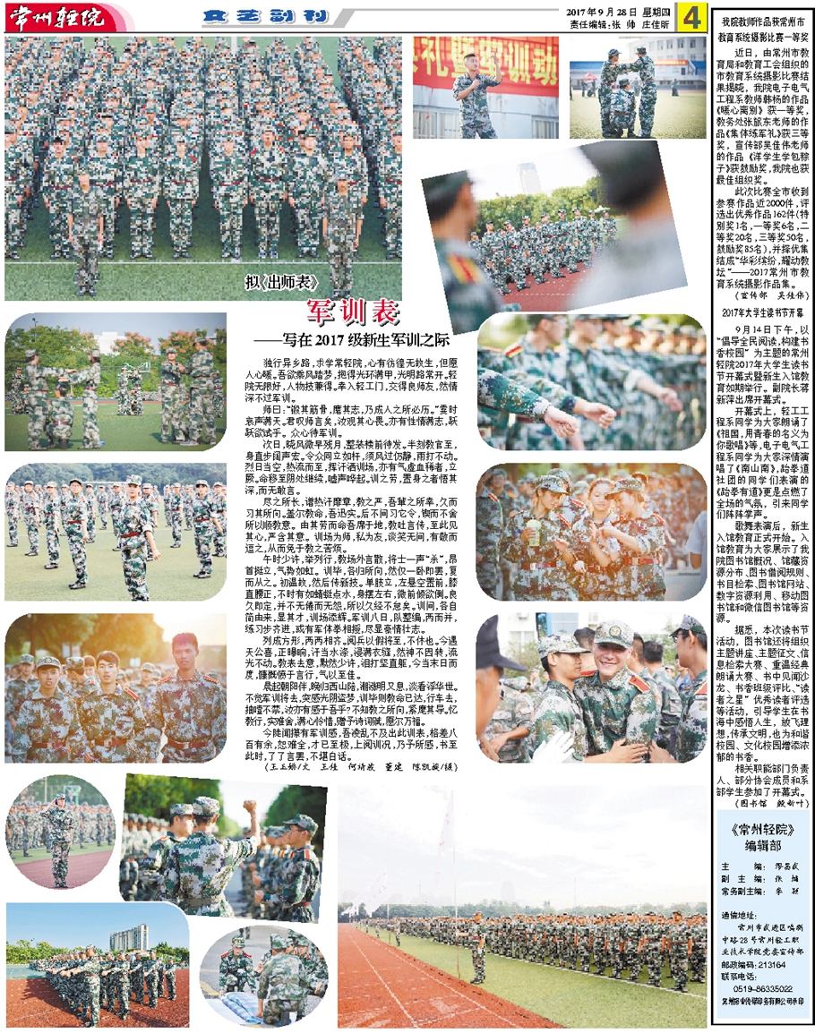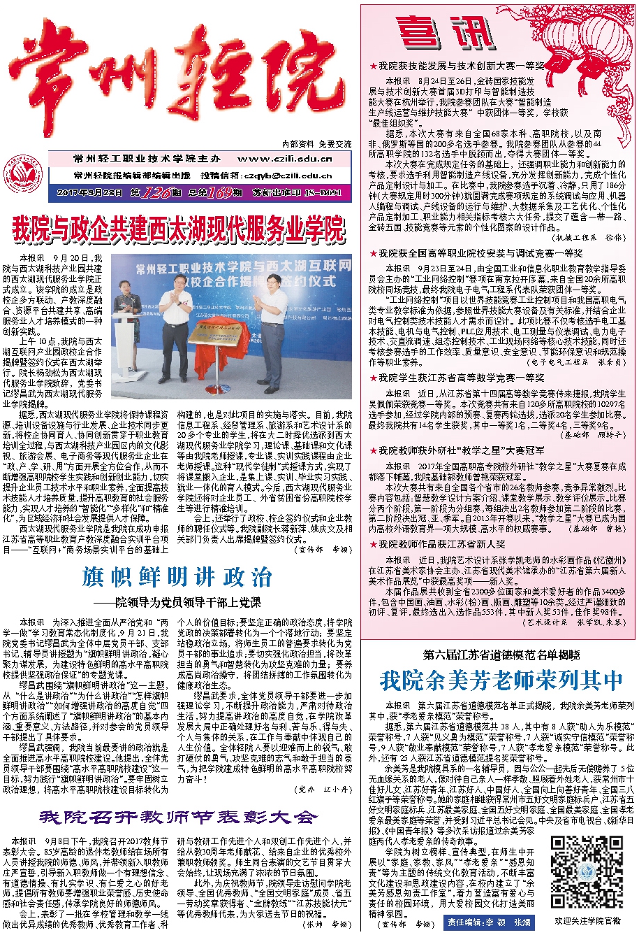 常州輕院報2017年9月28日第126期總第169期