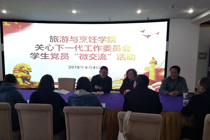 ?4月4日上午,旅游與烹飪學院開展關工委老教師與學生黨員“微交流”活動。活動特別邀請了學院關工委湯羅增、朱文霞、郭建明三位老教師與學生黨員作了“明晰發展目標,爭做先鋒模范”為主題的微交流。旅游學院黨總支書記高振發出席交流活動。