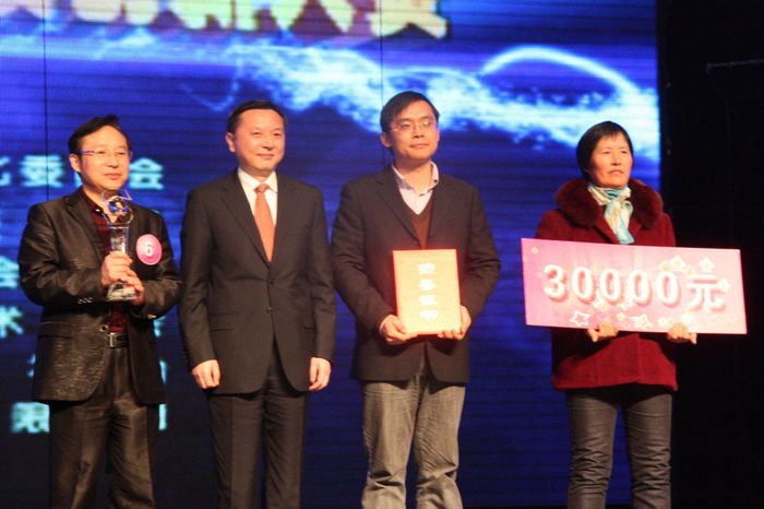 南車戚墅堰機車車輛工藝研究所有限公司參賽的“WT1650風電齒輪箱的研制及產業化”項目已實現產值1.2億,預計“十二五”期間形成銷售12億元。面對強大的對手,暫居第二的袁鋒教授并不膽怯,在激烈的辯論后,袁鋒教授以一句話打動評委:“雖然我們是高職院校,校企合作的企業也是個小企業,但我們的教師、我們的團隊為常州的LED產業作了大量的技術服務工作,我們的專業也為常州的LED企業培養了LED高技能人才,我們有科技創新的熱情與能力,而本次大賽的宗旨就是為了鼓勵和支持更多的中小企業進行技術創新?!?br /> 最終,評委被袁鋒教授的話語深深打動,評委舉牌決定PK結果,我院反敗為勝,獲得了本屆科技創新大賽的冠軍, 贏得了3萬元的大獎。南車戚墅堰機車車輛工藝研究所有限公司與常州環視高科電子科技有限公司獲二等獎,各獲獎金2萬元。常州中興華達科技有限公司等三家企業獲三等獎,各獲獎金1萬元。常州市委常委、科教城黨工委書記徐光輝親自為袁鋒教授領銜的校企合作團隊頒獎并合影留念。