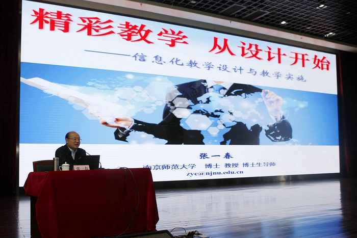 4月4日上午,我校全體教師齊聚一堂,共同聆聽南京師范大學繼續教育學院院長、博士生導師張一春教授題為“精彩教學,從設計開始——信息化教學設計與教學實施”的講座。學校副校長蔣新萍出席并主持活動。
