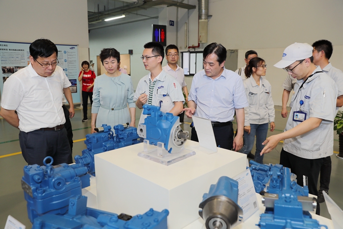 開班儀式后,繆昌武一行在邱永寧等人的陪同下,對旨在打造世界一流水平智能制造標桿性工廠的恒立集團進行了實地調研,依次參觀了恒立集團下設的恒立油缸、恒立鑄造和恒立液壓科技。