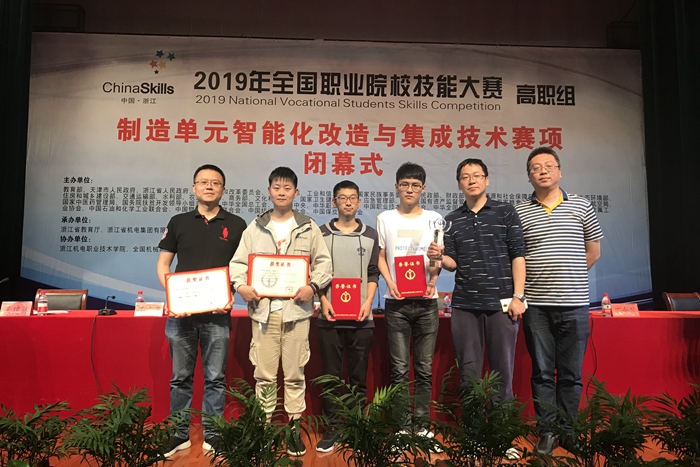 62日,2019年全國職業院校技能大賽高職組制造單元智能化改造與集成技術賽項在浙江落幕,我校代表隊勇奪本屆全國職業院校技能大賽第2個一等獎。至此我校今年4個國賽項目比賽全部結束,共獲得一等獎2項,二等獎1項,三等獎1項。
