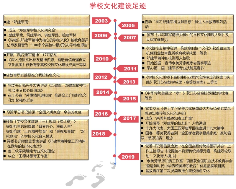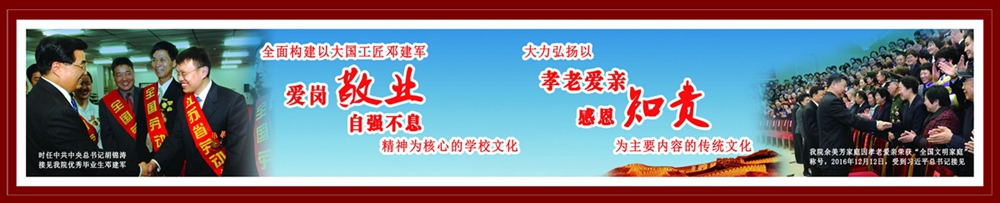 2006年,我們將主流文化命名為“以鄧建軍精神為核心的學校文化”,以便營造文化氛圍、彰顯主流文化、推動特色文化傳播;2017年開始,在原來“以鄧建軍精神為核心的學校文化”基礎上,將學校文化向前推進,命名為:“工匠精神培育與感恩知責教育雙輪聯動的學校文化”。