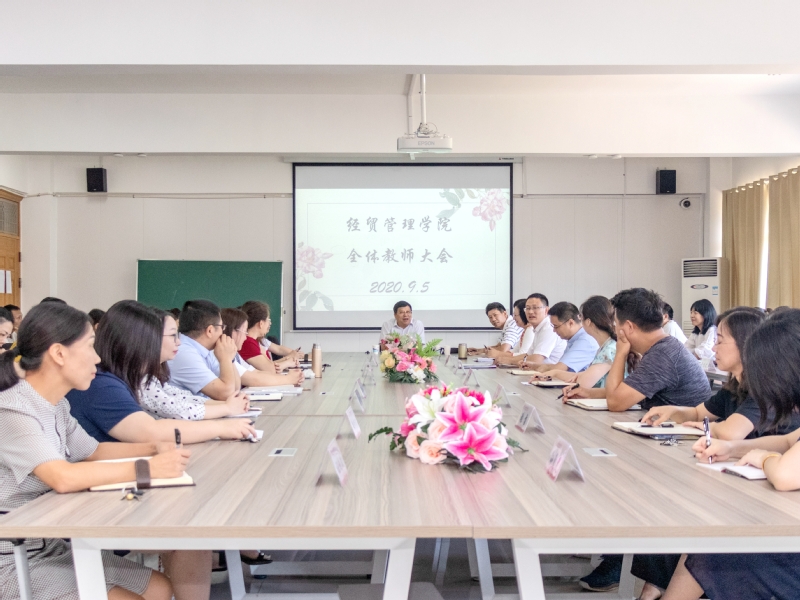 繆昌武向全體教師介紹了第二次黨代會以來學校取得的標志性成果、“十四五”規劃的遠景目標、省委高質量發展考核的重要性以及創建高水平院校的路徑。他指出,人才是學校發展的重要戰略資源,人才隊伍是推動學校內涵發展的重要支撐,人才資源決定學校事業發展的水平。經貿管理學院需切實加強高層次人才隊伍建設,重視高層次人才的引進和內培,鼓勵老師提升學歷、積極攻讀博士學位。他要求,經貿管理學院領導班子要對標找差,“走出去、請進來”,加強調研,深刻領會專業建設在學校發展中的核心地位,提升國際商務專業群的核心競爭力,打造專業特色,加強產學研,服務區域經濟發展。
