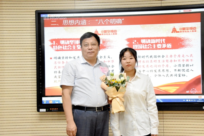 繆昌武老師在授課中注重理論和實踐相結合,用親切質樸的語言和鮮活生動的故事,牢牢抓住青年大學生思想特點,做到“配方”先進、“工藝”精湛、“包裝”時尚,給學生提供香味形俱佳的精神大餐,讓他們愿意吃、喜歡吃,把思政課講得“有虛有實”“有情有意”“有滋有味”。他飽含深情地講述自己幾十年親身經歷的變化,通過文字和圖片解讀國家的相關政策。他號召青年學生要抓住發展機遇,響應國家號召,自覺把個人前途同國家民族的命運緊緊結合在一起,把個人的學習進步同祖國的繁榮富強緊緊聯系在一起。上課結束后,經貿管理學院學生主動送上鮮花和賀卡,祝福繆昌武老師教師節快樂。