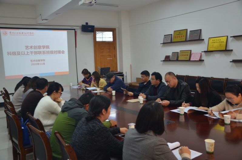 為進一步加強和改進學(xué)生思想政治工作,落實學(xué)校十大育人體系,努力為學(xué)生成長成才服務(wù),促進干部作風(fēng)建設(shè),推動和諧校園建設(shè),11月10日,藝術(shù)創(chuàng)意學(xué)院召開科級干部定點聯(lián)系班級對接會。副校長吳麗云、宣傳部部長檀祝平以及相關(guān)科級干部和對接班級班主任參加了本次會議,會議由藝術(shù)創(chuàng)意學(xué)院黨總支副書記孟慶霞主持。