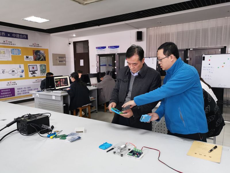 信息工程學院相關負責人陪同參與現場指導,并組織物聯網應用技術專業中德職業教育教學模式改革教學團隊進行研討。