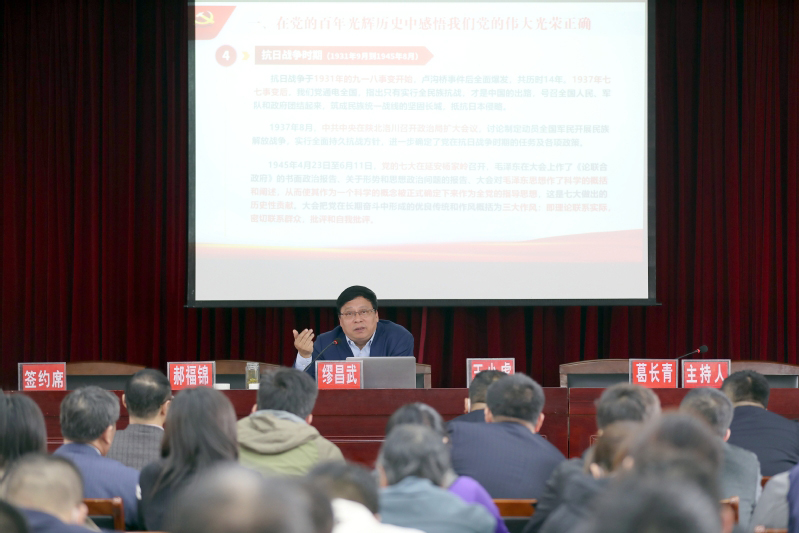 繆昌武圍繞在黨的百年光輝歷史中感悟我們黨的偉大光榮正確、在重溫黨的卓越成就中感悟我們黨的偉大力量、歷史的啟示與現(xiàn)實的思考這三個方面帶領(lǐng)在場全體黨員對黨史進(jìn)行了系統(tǒng)學(xué)習(xí)。他指出,中國共產(chǎn)黨領(lǐng)導(dǎo)中國人民走過的百年歷程,是光榮輝煌的一百年,也是艱苦卓絕的一百年;是奠基立業(yè)的一百年,也是開辟未來的一百年。在中國共產(chǎn)黨即將迎來百年華誕之際,以習(xí)近平同志為核心的黨中央要求在全黨開展黨史學(xué)習(xí)教育,宣示了新時代共產(chǎn)黨人不忘初心、牢記使命的堅定決心,展現(xiàn)了再接再厲把中國特色社會主義事業(yè)推向前進(jìn)的奮進(jìn)姿態(tài),為深入推進(jìn)黨的建設(shè)新的偉大工程注入強(qiáng)勁動力。他強(qiáng)調(diào),黨員同志要做到學(xué)史明理、學(xué)史增信、學(xué)史崇德、學(xué)史力行,學(xué)黨史、悟思想、辦實事、開新局,以昂揚姿態(tài)奮力開啟全面建設(shè)社會主義現(xiàn)代化國家新征程,以優(yōu)異成績迎接中國共產(chǎn)黨成立100周年。