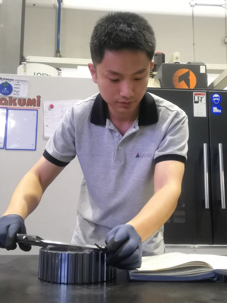 “我的技術(shù),就是從開發(fā)這個(gè)電主軸慢慢積累起來的?!睏畛蓪蠋熀凸境錆M感激。也就是憑著這樣的頂尖技術(shù),2016年6月,楊成成功應(yīng)聘,成為麥格納汽車系統(tǒng)(常州)有限公司的一名機(jī)加工專員,專門負(fù)責(zé)公司的沖壓、加工的技術(shù)指導(dǎo),時(shí)間不長,就做了機(jī)加工主管。