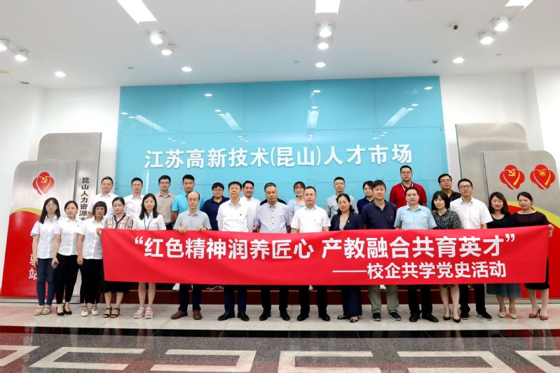 6月25日、26日,校黨委副書記毛伯民等一行共8人,帶著精心設計打造的黨史學習教育專題黨課,走進昆山人力資源市場集團有限公司,為公司全體黨員以及16家企業代表送上了一場深刻的思想政治洗禮。“紅色精神潤養匠心,產教融合共育英才”,將黨建與校企合作有機結合,進一步推動校企雙方行業與專業互動、教學與科研貫通、理論與實踐結合,培育新時代高素質復合型技術技能人才。