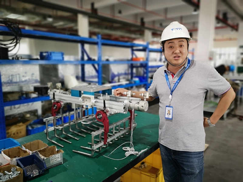 公司第一張訂單產品抓舉機器人,副總黃如鵠愛不釋手