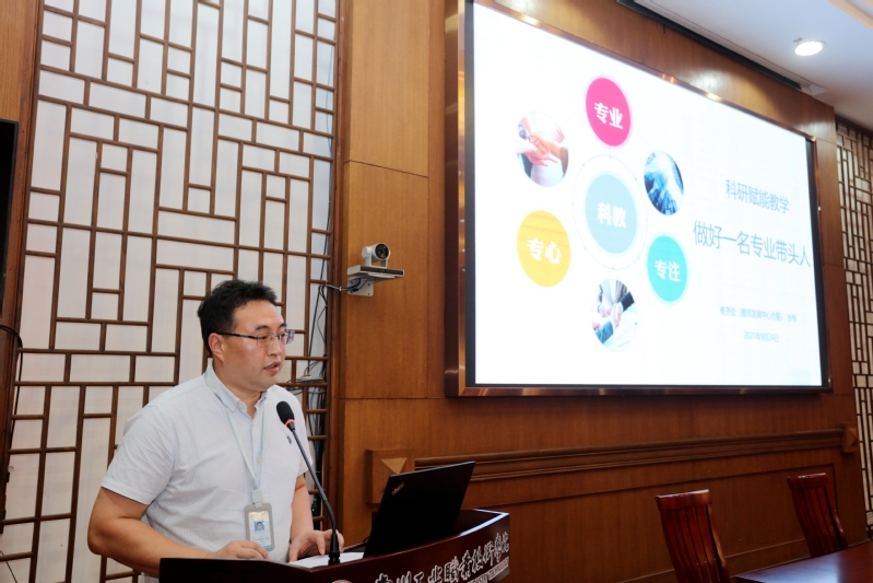 教務處處長徐偉以“科研賦能教學——做好一名專業帶頭人”為主題作專題講座。他從問題與矛盾、科研與教學、專業與專業群以及如何做好專業帶頭人這四個方面做了詳細解讀。他強調,“十四五”時期,我們要提升高??萍紕撔滤?,構建高校科技創新體系,全面提升高校原始創新能力,推動產學研用深度融合,助力國家科技自立自強。他指出,科教協同育人是提升高校教師科研能力和教學質量的有效方式,是培養現代創新型復合型技術技能人才的必要途徑,是建設高水平高職學校和高水平專業群的必然要求。教學與科研要相融合,一是教務處和科技處信息互聯互通,聯合對科研項目與教學相融合的情況進行監督檢查;二是教師科研項目與畢業設計(論文)相融合,通過制度設計強化教師教研融合的意識,指導學生及早確定自己的研究方向;三是科研課題與“互聯網+”大學生創新創業項目、挑戰杯等學科競賽相融合。此外,徐偉還探討了專業帶頭人的主要職責,專業建設的基本路徑以及新進教師、博士的個人發展路徑。