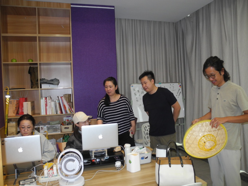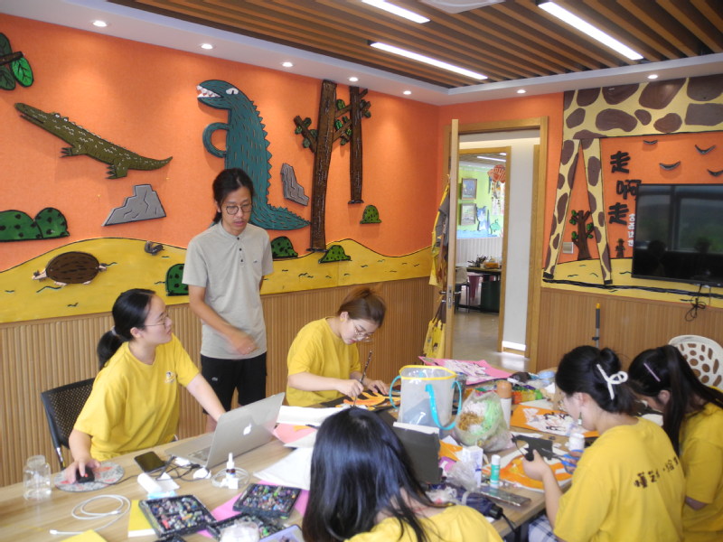 劉星老師(右3)、張曄老師(右2)指導(dǎo)繪館文創(chuàng)人員進(jìn)行文創(chuàng)設(shè)計(jì)