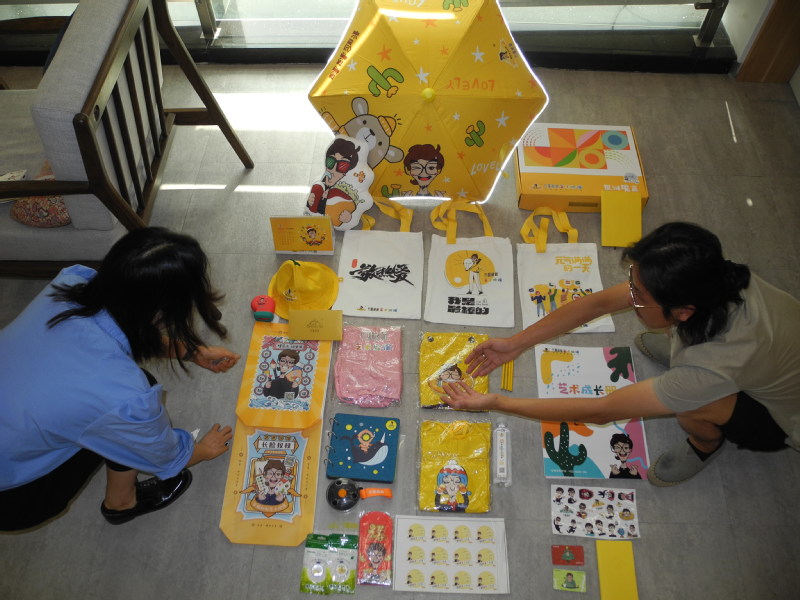 的確,張白雨自創(chuàng)業(yè)以來(lái),一直以各種手段進(jìn)行品牌打造,他把數(shù)字傳播媒體的宣傳手段發(fā)揮到了極致。他有網(wǎng)站,有各種微信、抖音營(yíng)銷號(hào),有的營(yíng)銷號(hào)就是張白雨自己在做——公司所有營(yíng)銷號(hào)的粉絲,他們都嚴(yán)格進(jìn)行細(xì)分;他們有各種層次不同、對(duì)象不同的微信群;單單是長(zhǎng)臉叔叔的文創(chuàng)產(chǎn)品,他就設(shè)計(jì)制作了幾十種,或贈(zèng)或賣。有的小朋友家長(zhǎng)竟然專門收藏他的文創(chuàng)產(chǎn)品,種類比他旗艦店的倉(cāng)庫(kù)都齊全。長(zhǎng)臉叔叔的文創(chuàng)產(chǎn)品以鮮亮的色彩、活潑的造型見(jiàn)長(zhǎng),人見(jiàn)人愛(ài)。當(dāng)然,這里面有很大一部分是劉星老師帶著學(xué)生幫助設(shè)計(jì)的。有一次劉星老師帶了很多長(zhǎng)臉叔叔的文創(chuàng)產(chǎn)品,參加江蘇省委宣傳部等18個(gè)部委廳局組織的“紫金獎(jiǎng)”文化創(chuàng)意設(shè)計(jì)大賽,所有產(chǎn)品竟被觀展的市民一搶而空——不是贈(zèng)送,是出售。今年劉老師為長(zhǎng)臉叔叔繪館設(shè)計(jì)的品牌宣傳畫(huà)冊(cè),以幾何圖形為主題,又走在了圖形化流行趨勢(shì)之前。長(zhǎng)臉叔叔文創(chuàng)產(chǎn)品經(jīng)過(guò)了市場(chǎng)的檢驗(yàn),隨著這些文創(chuàng)產(chǎn)品的腳步,長(zhǎng)臉叔叔品牌也走進(jìn)了千家萬(wàn)戶。
