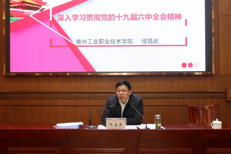 11月25日,校宣講團成員、黨委書記繆昌武為智能控制學院、旅游與烹飪學院全體教職工專題宣講十九屆六中全會精神。專題宣講會由黨委委員、宣傳部部長檀祝平主持。