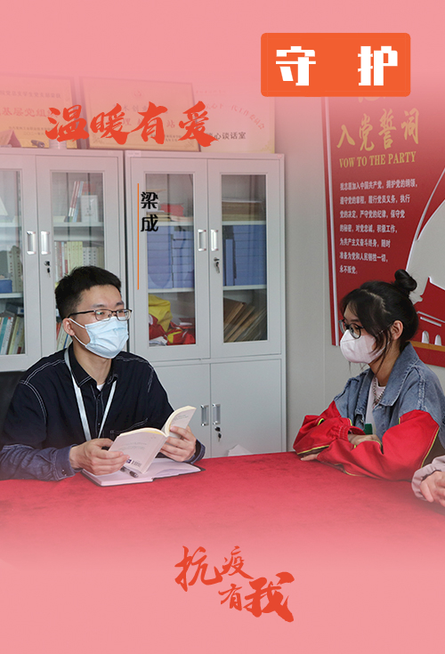 藝術創意學院輔導員梁成時刻關注學生的心理健康,筑牢學生心理防疫第一防線。“疫情期間,學生管理工作任務重、責任大,需要極大的耐心和愛心,各種突發情況也給輔導員工作帶來了新的挑戰。”梁成說道。4月5日晚,2020級某同學因家人去世情緒波動大,梁成在詳細了解完情況后,及時與家長溝通,耐心安撫好學生,并于第二天一大早將該同學送到學校北門外。3月至今,梁成已經接待學生心理訪談50余人(次),及時對學生遇到的問題進行關心和指導。他還積極探索心理健康教育新路徑,精心打造“心理盒子”“心語讀書”“心理云班會”三個功能區,促進學生健康成長和全面發展。