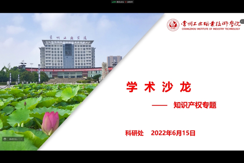 6月15日,我校舉辦線上學術沙龍暨知識產權專題講座,邀請蘇州市中南偉業知識產權代理事務所蔡瑜鋒、常州市英諾創信專利代理事務所鄭云、南京正聯知識產權代理有限公司常州分公司朱曉凱分別作《專利基礎知識與專利挖掘》《發明專利的挖掘及簡易判斷》《如何提高專利的授權率》為主題的講座。二級學院部分專任教師參加了此次活動?;顒佑煽蒲刑幐碧庨L高天友主持。