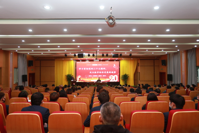 姚慶文指出,黨的二十大報告第一次單獨成章對教育、科技、人才工作進行一體部署,為新時代教育工作指明了前進方向。他結(jié)合黨的二十大報告中“建設(shè)現(xiàn)代化產(chǎn)業(yè)體系”相關(guān)內(nèi)容,圍繞“構(gòu)建新一代信息技術(shù)、人工智能、生物技術(shù)、新能源、新材料、高端裝備、綠色環(huán)保等一批新的增長引擎”的重要論述就數(shù)字經(jīng)濟發(fā)展新趨勢進行了詳細解讀。他強調(diào),廣大師生要準確識變、科學(xué)應(yīng)變、主動求變,認清數(shù)字經(jīng)濟發(fā)展新趨勢,找準數(shù)字經(jīng)濟發(fā)展新機遇,開拓數(shù)字經(jīng)濟發(fā)展新局面,在專業(yè)建設(shè)層面要把握“高端化、智能化、綠色化”發(fā)展需求,課程建設(shè)層面要融入新知識、新技術(shù)、新工藝,教師層面要堅持以學(xué)生為中心,以研究帶動發(fā)展,學(xué)生層面要注重德智體美勞全面發(fā)展。