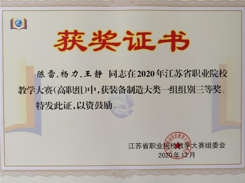 陳雷老師團隊獲得江蘇省教學能力比賽三等獎