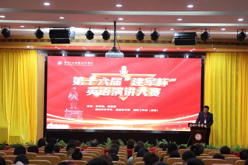 為豐富學生的校園文化生活,激發(fā)學生英語學習熱情,提高學生英語口語水平,4月26日,教務處、校團委和基礎(chǔ)教學部在知行樓報告廳聯(lián)合主辦了第十六屆“建軍杯”英語演講大賽。基礎(chǔ)教學部主任費建明、黨總支副書記江小丹、副主任周娟、王靜芳、校團委副書記姜婉等出席活動。