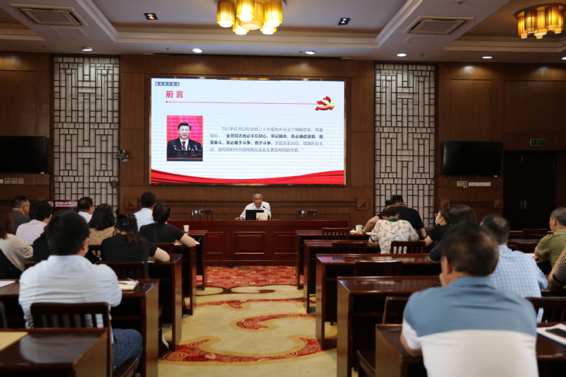 為進一步推動學習貫徹習近平新時代中國特色社會主義思想主題教育走深走實,5月31日,校黨委副書記毛伯民以《深入學習貫徹黨的二十大精神,牢記“三個務必”,推進學校事業高質量發展》為題,為數字商務學院、馬克思主義學院全體教師講授專題黨課。