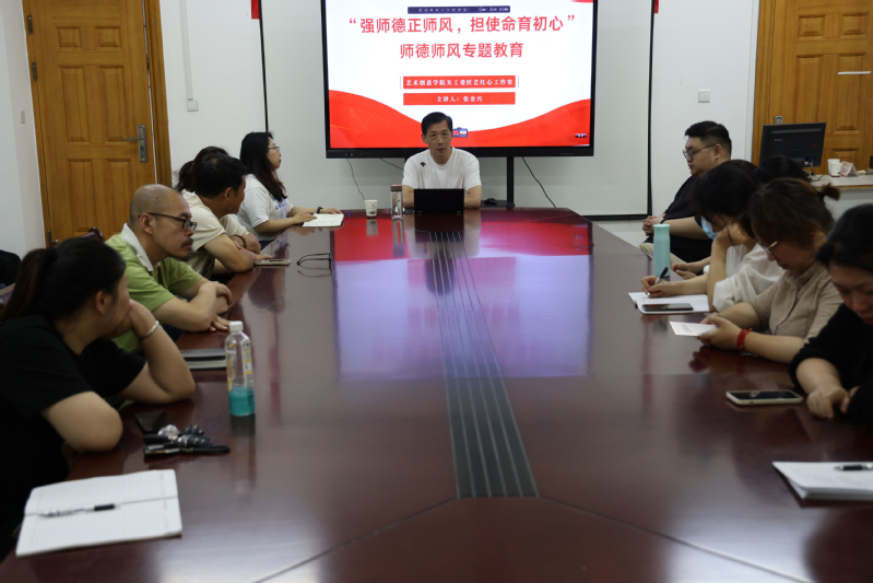 為進一步學習貫徹習近平新時代中國特色社會主義思想主題教育,加強教師隊伍師德師風建設,引導廣大教師自覺遵守教師職業道德規范,5月31日,藝術創意學院關工委匠藝紅心工作室開展“強師德正師風,擔使命育初心”師德師風主題教育,本次活動邀請到校關工委銀發關愛工作室張金興老師走進學院師德講堂,與全體教師開展主題分享。