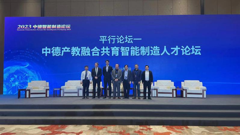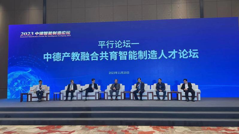 在中德產教融合智能制造人才分論壇上,楊勁松就工業4.0對技能型人才的需求,分享了我校在德國的雙元制、智能制造工業4.0、智能制造產教融合等方面的案例和獲得的成果,介紹了我校在人才培養方面所做的課程體系重構、教學方法改革、人才培養模式創新等。他結合目前我校在智能化轉型、數字化改造方面所做的系列探索,就如何培養適應企業需要,具備較強的學習、思考和實踐創新能力,能適應新技術、新業態、新模式的高素質技術技能型人才發表了講話。