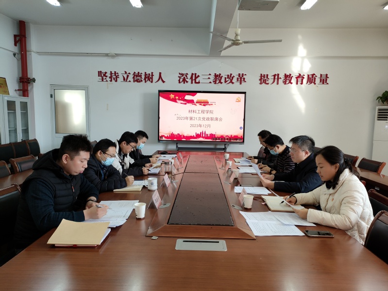 黨政聯(lián)席會議上,材料工程學院黨政班子成員圍繞安全工作、招生工作、實驗實訓場所建設、項目費用支出等議題進行了深入討論、充分研究,并作出相關(guān)決議。