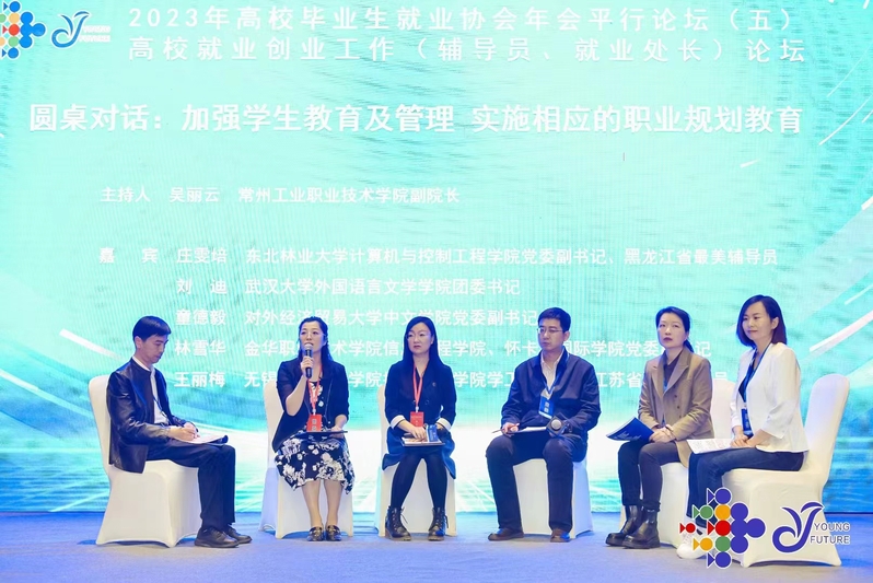 吳麗云主持加強(qiáng)學(xué)生教育及管理、實(shí)施相應(yīng)的職業(yè)規(guī)劃教育交流會(huì)。會(huì)議中,參會(huì)代表就各校開(kāi)展學(xué)生職業(yè)生涯規(guī)劃的相關(guān)經(jīng)驗(yàn)進(jìn)行了交流。