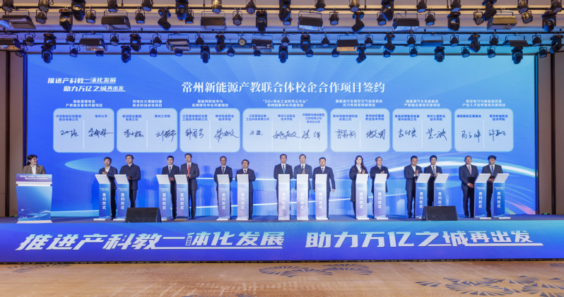 會上,常州合成生物產教聯合體、常州碳纖維及復合材料產教聯合體、常州智能電力裝備產教聯合體、常州檢驗檢測認證產教聯合體、常州智能制造裝備產教聯合體、常州新型電力與高端裝備聯合體等6個市域產教聯合體揭牌;新能源鋰電池產教融合基地共建、風電葉片用碳纖維聯合科技研發、智能網聯技術與應用研究中心共建、新能源汽車新型空氣懸架系統壓力傳感器研制、新能源汽車裝備制造產教融合基地共建、“5G+核心工業軟件云平臺”協同創新中心、新型電力與新能源裝備產業人才培養基地共建等7個聯合體校企合作項目簽約;3個聯合體重點規劃項目發布,分別是:常州新能源產教聯合體智慧云平臺、萬幫數字能源“種子計劃”“樁主計劃”、博世氫能源產業培訓中心。