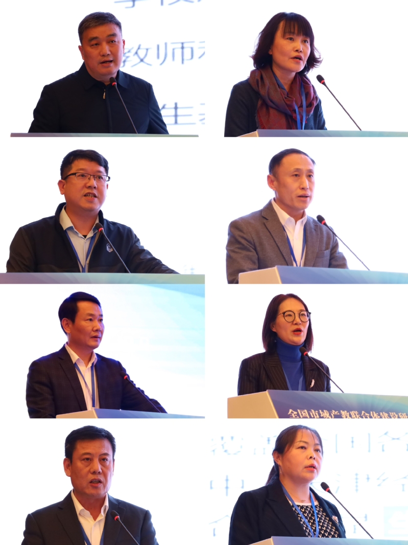 院校報告環節,常州新能源產教聯合體院校代表、聯合體理事會副理事長、我校黨委書記席海濤,大連金普新區(大連經濟技術開發區)市域產教聯合體牽頭院校代表、大連職業技術學院副校長宋麗麗,晉江市域產教聯合體牽頭院校代表、泉州職業技術大學副校長郭霏霏,長春市汽車產業集群產教聯合體牽頭院校代表、長春汽車工業高等專科學校副校長張勇忠,贛州稀有金屬市域產教聯合體牽頭園區代表、贛州經開區黨政辦四級調研員、聯合體理事會理事長翁毅軍,武漢中國光谷產教聯合體牽頭院校代表、武漢軟件工程職業學院副校長孫美華,上合示范區(青島)產教聯合體院校代表、膠州市職業教育中心學校副校長莊錫高,天津經濟技術開發區生物醫藥產教聯合體院校代表、聯合體促進中心理事、天津科技大學生物工程學院副院長滕玉鷗等8位國家級、省級市域產教聯合體牽頭院校、園區代表分別就產教聯合體建設的實踐與思考進行深入分享交流。