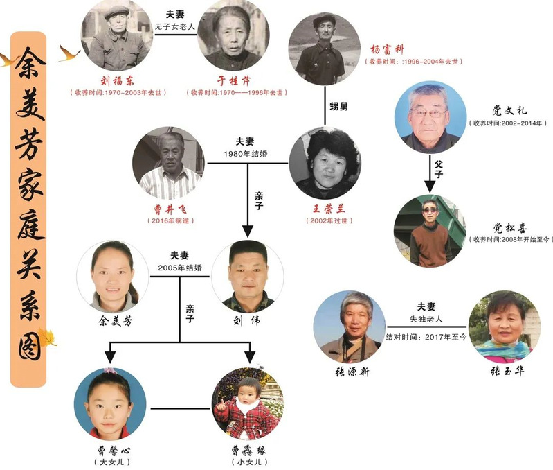 2011年,從工會轉(zhuǎn)過來一篇稿件,是模具系一位叫余美芳的輔導(dǎo)員撰寫的自述稿,敘述她的家庭從她公公開始,幾十年來先后贍養(yǎng)了五位外姓孤寡老人。黨委書記楊興華知曉后十分重視,讓工會轉(zhuǎn)到宣傳部,讓我花點(diǎn)功夫。看到這樣的重大題材,我也是如獲至寶,于是改寫成了一篇通訊《五姓之家的敬老演義》。為了讓這個復(fù)雜家庭的人物關(guān)系更加清晰,那天上午我把余美芳喊到辦公室,讓宣傳部一位老師在余美芳的指導(dǎo)下畫出了家庭關(guān)系圖。