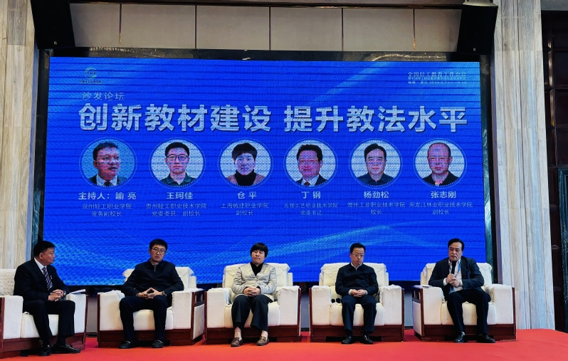作為大會分會場的重要環節,校長楊勁松受邀出席“創新教材建設 提升教法水平”輕工教育專題培訓會,并在校長“沙發論壇”上介紹了我校的辦學歷史和辦學特色。他重點圍繞輕工行業智能化改造、數字化轉型和常州“新能源之都”建設背景下,我校如何立項建設國家級新能源市域產教聯合體、“三教”改革典型做法、工匠學院特色等做了經驗交流。